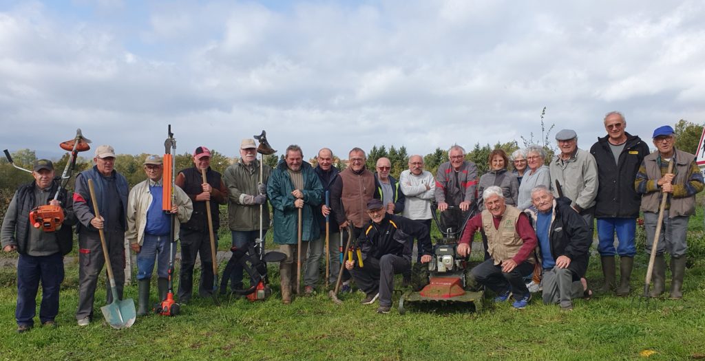 Ils n’étaient pas moins de 17 membres des “Pas Pressés”, un record !… pour participer à une grande journée d’entretien, mais aussi de réouverture de chemins. Cette opération qui s’inscrit dans l’opération initiée par la FFRandonnée Loire “Mon chemin j’y tiens…, je l’entretiens !!!” a permis de rendre impeccables  les 3 circuits qui seront empruntés par la randonnée du “Téléthous” le samedi matin 29 novembre ; ce fut également l’occasion d’utiliser le nouveau matériel acheté en partie grâce à une subvention de l’Agence Nationale du Sport ( dans le cadre du Projet Sportif Fédéral de la FFRandonnée) et d’une aide de Nature et Patrimoine des Montagnes du Matin. A midi, chacun a pu reprendre des forces grâce au travail de 3 cuisinières bénévoles du club et à l’accueil de Danièle et Elie.