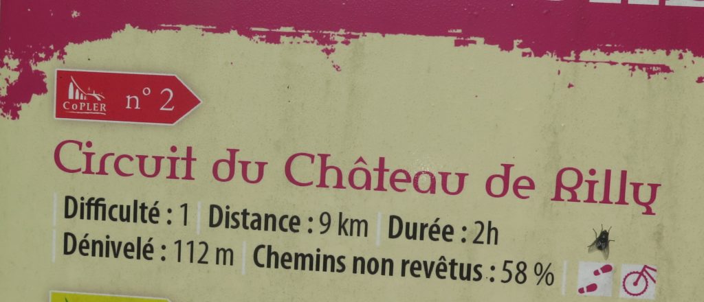 Au programme de la matinée pour les 17 participants, le circuit du “Château de Rilly”, d’une distance de 9.5 km pour un dénivelé positif de 320 m. (Annoncé + 112 m sur le panneau général des circuits implanté à Cordelle ??).