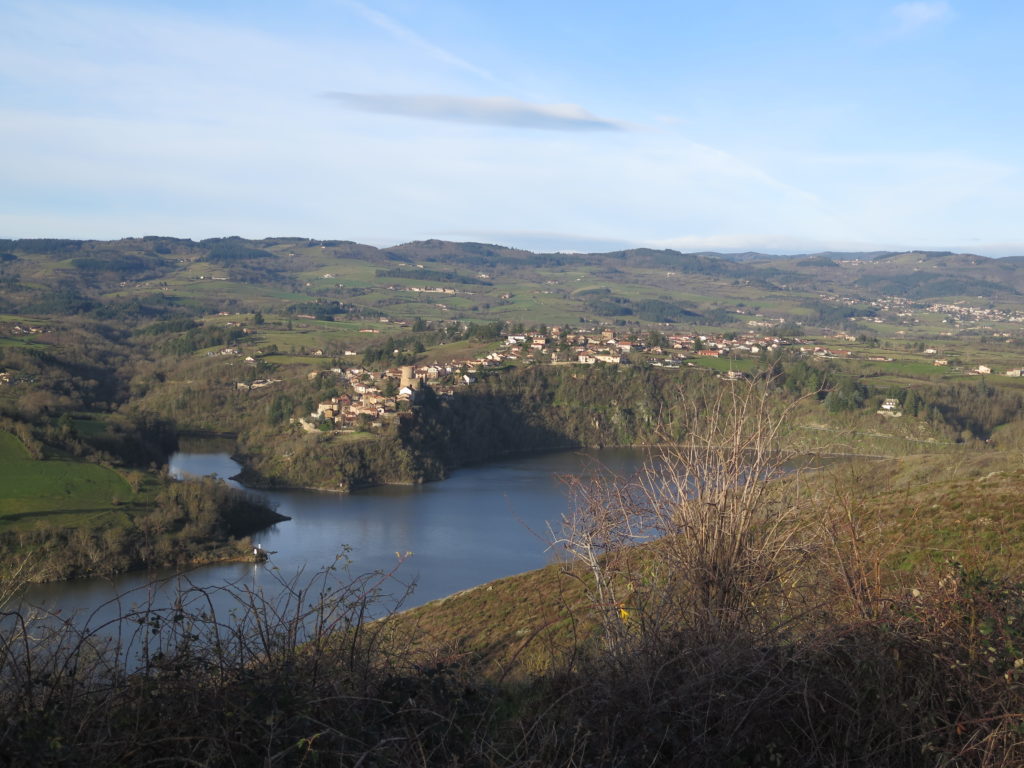 En raison du seul parking disponible sur cette boucle, le départ s’est déroulé depuis le point côté 391, vers le secteur du lieu-dit “Joeuvres”. De cet endroit, Saint-Jean-Saint-Maurice apparaissait de l’autre côté de la Loire.